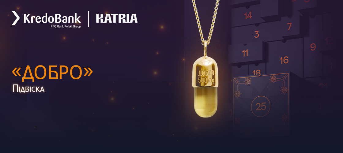 Срібна підвіска «Добро» є одним з 25 подарунків у Адвент-календарі від Кредобанку, які розіграють серед клієнтів банку. Ставайте клієнтом банку, зробіть хоча б одну оплату карткою Mastercard та беріть участь в розіграші.