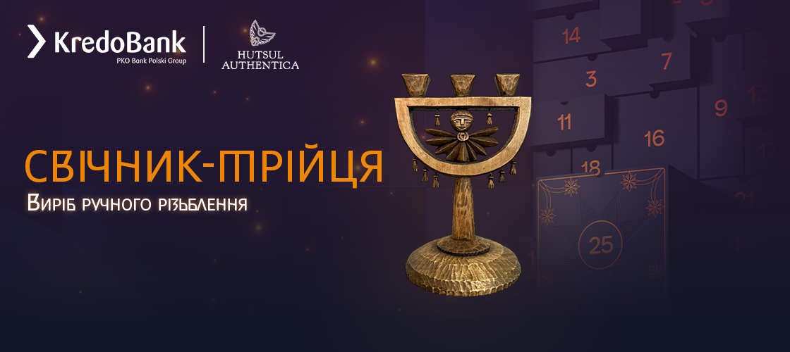 Свічник-трійця є одним з 25 подарунків у Адвент-календарі від Кредобанку, які розіграємо серед клієнтів банку. Ставайте клієнтом банку, зробіть хоча б одну оплату карткою Mastercard та беріть участь в розіграші.